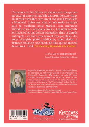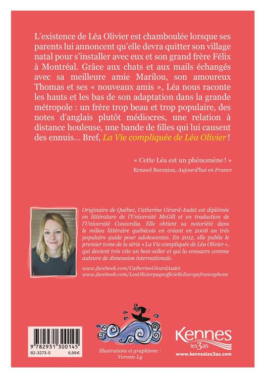Le premier tome de "La vie compliquée de Léa Olivier" nous emmène à Montréal, en compagnie de Léa, 14 ans, qui vient tout juste d'y emménager avec ses parents. Séparée de sa meilleure amie Marilou et de son amoureux Thomas, elle peine un peu à se faire à son nouvel environnement. Il faut dire qu'entre les maladresses de Thomas, pas très doué pour les relations à distance, les filles du lycée qui la prennent de haut et son frère Félix qui joue les beaux gosses, Léa se sent parfois un peu seule. Heureusement il y a Marilou, à qui elle raconte tout, par mail et par Skype. Laquelle la tient au courant de la vie de leur village, des faits et gestes de Thomas et des aléas de sa vie amoureuse.