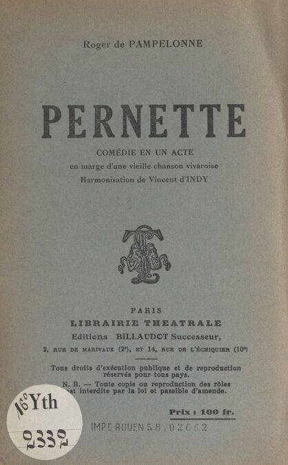 Comédie en un acte, en marge d'une vieille chanson vivaroise