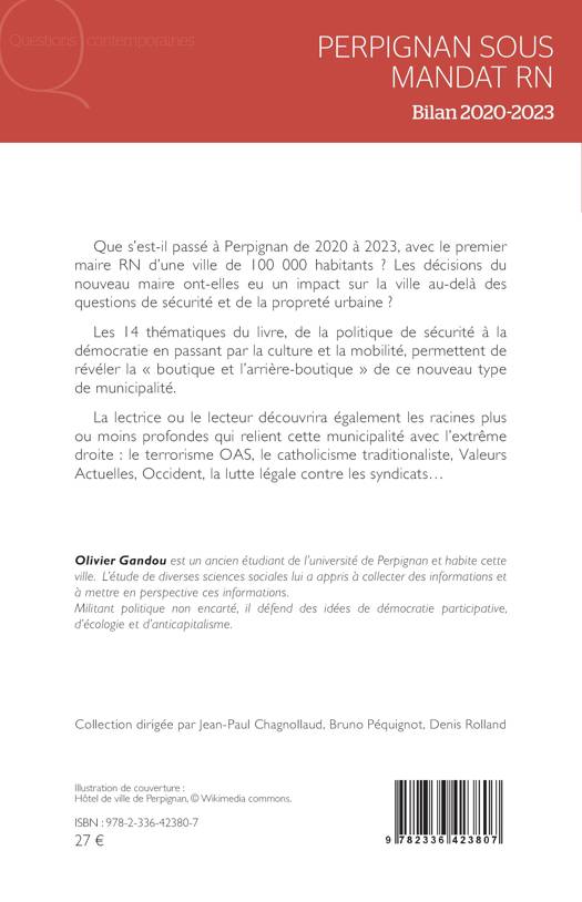 Que s'est-il passé à Perpignan de 2020 à 2023, avec le premier maire RN d'une ville de 100 000 habitants ? Les décisions du nouveau maire ont-elles eu un impact sur la ville au-delà des questions de sécurité et de la propreté urbaine ? Les 14 thématiques du livre, de la politique de sécurité à la démocratie en passant par la culture et la mobilité, permettent de révéler la boutique et l'arrière-boutique de ce nouveau type de municipalité. La lectrice ou le lecteur découvrira également les racines plus ou moins profondes qui relient cette municipalité avec l'extrême droite: le terrorisme OAS, le catholicisme traditionaliste, Valeurs Actuelles, Occident, la lutte légale contre les syndicats...
