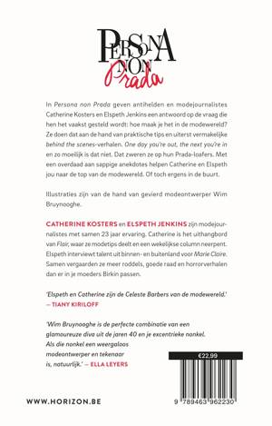 In Persona non Prada geven antihelden en modejournalistes Catherine en Elspeth een antwoord op de vraag die hen het vaakst gesteld wordt: hoe maak je het in de modewereld? Ze doen dat aan de hand van praktische tips en uiterst vermakelijke behind the scenes-verhalen. One day you're out, the next you're in en zo moeilijk is dat niet. Dat zweren ze op hun vintage Gucci-loafers. Met een Vuitton-kofferset vol sappige anekdotes helpen Catherine en Elspeth jou naar de top van de modewereld. Of toch ergens in de buurt. Illustraties zijn van de hand van gevierd modeontwerper Wim Bruynooghe.