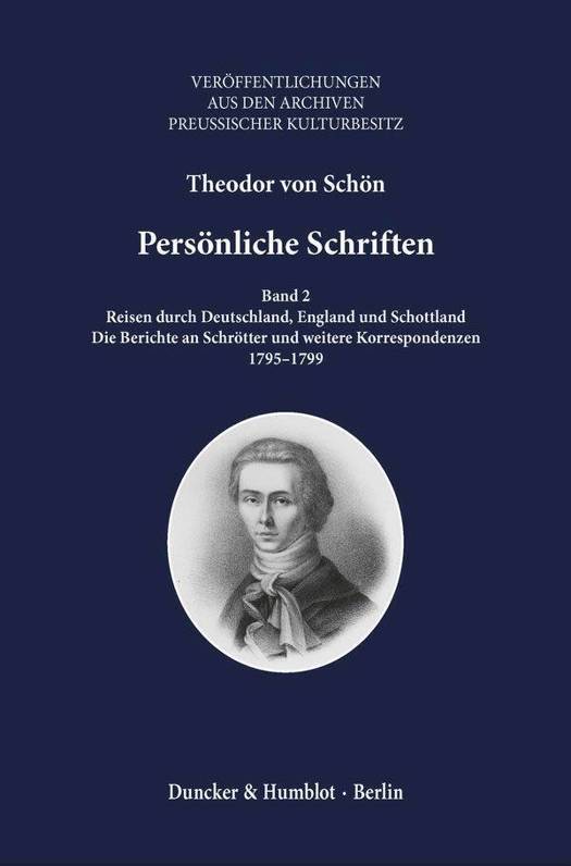 Theodor von Schön (1773-1856) wurde in Ostpreußen geboren. Nach einem Studium in Königsberg reiste er als Verwaltungsbeamter durch Norddeutschland und Großbritannien und errang Ansehen als Mitarbeiter des Freiherrn von Stein. 1807 setzte er sich für die Bauernbefreiung ein und forderte in seiner Funktion als Oberpräsident von West- und Ostpreußen nach 1815 weitgehende Freiheitsrechte des Bürgertums, Verfassungs- und Pressefreiheit sowie Gemeinde- und Gerichtsreformen. 1840 pochte Schön auf die Einlösung des königlichen Verfassungsversprechens, so dass sich Friedrich Wilhelm IV. von dem unbequemen Mahner trennte.Auf »Die autobiographischen Fragmente« (Bd. 1) folgen hier die erstmals edierten Berichte Theodor von Schöns an Minister Friedrich Leopold Freiherr von Schrötter (1743-1815). Zusammen mit den beigegebenen Korrespondenzen dokumentieren die Texte die politischen, ökonomischen und gesellschaftlichen Verhältnisse in Norddeutschland und Großbritannien. Es entsteht ein dichtes Bild der jeweiligen regionalen Kultur-, Verfassungs- und Wirtschaftsgeschichte am Ende des 18. Jahrhunderts sowie von den Entwicklungs-Vorstellungen in der Verwaltung Preußens vor den großen Reformen.
