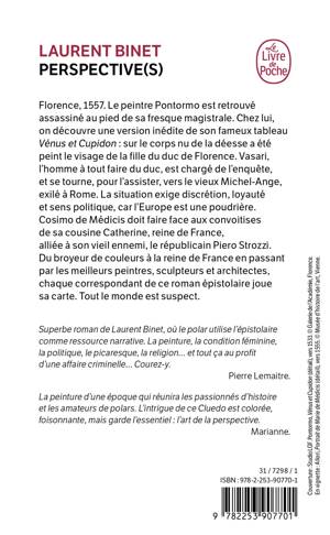 Florence, 1557. Le peintre Pontormo est retrouvé assassiné au pied de sa fresque magistrale. Chez lui, on découvre une version inédite de son fameux tableau Vénus et Cupidon : sur le corps nu de la déesse a été peint le visage de la fille du duc de Florence. Vasari, l’homme à tout faire du duc, est chargé de l’enquête, et se tourne, pour l’assister, vers le vieux Michel-Ange, exilé à Rome. La situation exige discrétion, loyauté et sens politique, car l’Europe est une poudrière. Cosimo de Médicis doit faire face aux convoitises de sa cousine Catherine, reine de France, alliée à son vieil ennemi, le républicain Piero Strozzi. Du broyeur de couleurs à la reine de France en passant par les meilleurs peintres, sculpteurs et architectes, chaque correspondant de ce roman épistolaire joue sa carte. Tout le monde est suspect.