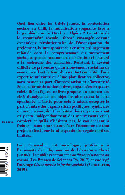 Le spontané n'a pas bonne réputation. Il est animal (mouvement incontrôlé, instinctif), il ne veut rien dire (comme l'événement, il est « rupture d'intelligibilité »), ou alors naïf (mouvements « semi-spontanés », autrement dit pseudo-spontanés), infra scientifique (« sociologie spontanée ») ou « purement » idéologique (spontanéisme, luxembourgismeâ¦). Pourtant, chassez le spontané par la porte, il revient par la fenêtre : l'actualité récente déborde de mouvements « spontanés » où les organisations sont débordées, les militants ne semblent pas à l'initiative, sur fond de grande méfiance vis-à-vis des partis et des « corps intermédiaires ». Une des significations explicites, c'est la revendication de plus de démocratie directe et moins de démocratie représentative, qui court depuis Nuit Debout jusqu'aux Gilets jaunes, mais que l'on retrouve aussi dans le mouvement des urgences ou lors des manifestations du Premier Mai, pour ne prendre que la France...