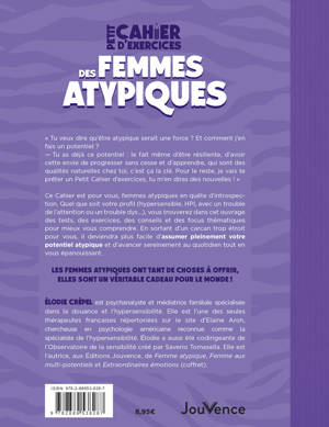 Ce Cahier est pour vous, femmes atypiques en quête d’introspection. Quel que soit votre profil (hypersensible, HPI, avec un trouble de l’attention ou un trouble dys...), vous trouverez dans cet ouvrage des tests, exercices, conseils et focus thématiques pour mieux vous comprendre. En sortant d’un carcan trop étroit pour vous, il deviendra plus facile d’assumer pleinement votre potentiel atypique et d’avancer sereinement au quotidien tout en vous épanouissant.