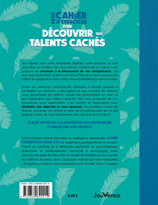 Ce Petit Cahier va vous révéler de multiples secrets pour développer vos capacités, pour « faire mieux », pour que votre vie soit à la hauteur de vos espérances. Rassemblant tests, questionnaires, citations et autres exercices vous amenant de façon ludique à réfléchir sur vous-même, il vous aidera à découvrir et à développer les talents cachés qui sommeillent en vous. Dès lors conscient de vos ressources, vous apprendrez à les mettre en application pour atteindre vos objectifs et vous épanouir _ Sachez utiliser vos talents, vos ressources et vos réussites pour avancer sereinement dans la vie et vous réaliser pleinement !