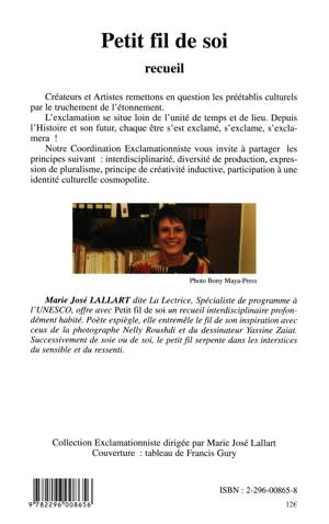 L'auteure offre avec Petit fil de soi un recueil interdisciplinaire profondément habité. Poète espiègle, elle entremêle le fil de son inspiration avec ceux de la photographe Nelly Roushdi et du dessinateur Yassine Zaiat. Successivement de soie ou de soi, le petit fil serpente dans les insterstices du sensible et du ressenti.