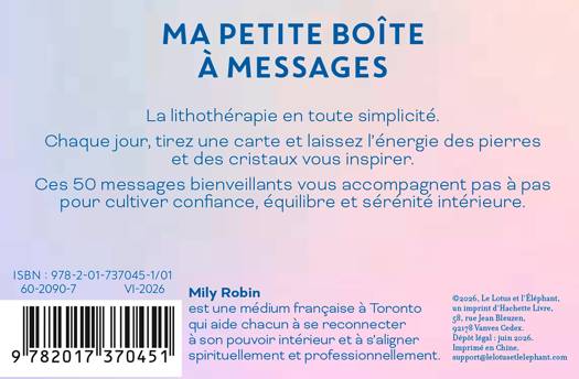La lithothérapie en toute simplicité. Chaque jour, tirez une carte et laissez l’énergie des pierres et des cristaux vous inspirer. Ces 50 messages bienveillants vous accompagnent pas à pas pour cultiver confiance, équilibre et sérénité intérieure.
