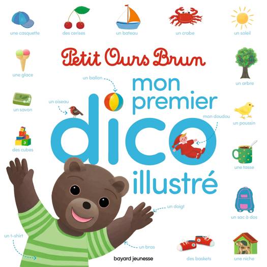 Que trouve-t-on dans le salon ? Comment s'appelle le bébé de la poule ? Quels vêtements porte-t-on pour dormir ? Découvre les mots du quotidien avec Petit Ours Brun ! Plus de 350 mots à reconnaitre et à nommer pour développer en images le vocabulaire des tout-petits.