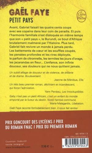 En 1992, Gabriel, dix ans, vit au Burundi avec son père français, entrepreneur, sa mère rwandaise et sa petite soeur, Ana, dans un confortable quartier d'expatriés. Gabriel passe le plus clair de son temps avec ses copains, une joyeuse bande occupée à faire les quatre cents coups. Un quotidien paisible, une enfance douce qui vont se disloquer en même temps que ce « petit pays » d'Afrique brutalement malmené par l'Histoire. Gabriel voit avec inquiétude ses parents se séparer, puis la guerre civile se profiler, suivie du drame rwandais. Le quartier est bouleversé. Par vagues successives, la violence l'envahit, l'imprègne, et tout bascule. Gabriel se croyait un enfant, il va se découvrir métis, Tutsi, Français...