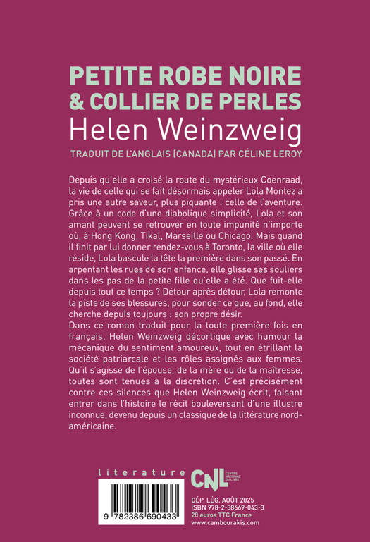 Depuis qu'elle a croisé la route du mystérieux Coenraad, la vie de celle qui se fait désormais appeler Lola Montez a pris une autre saveur, plus piquante : celle de l'aventure. Grâce à un code d'une diabolique simplicité, Lola et son amant peuvent se retrouver en toute impunité n'importe où, à Hong Kong, Tikal, Marseille ou Chicago. Mais quand il finit par lui donner rendez-vous à Toronto, la ville où elle réside, Lola bascule la tête la première dans son passé. En arpentant les rues de son enfance, elle glisse ses souliers dans les pas de la petite fille qu'elle a été. Que fuit-elle depuis tout ce temps ? Détour après détour, Lola remonte la piste de ses blessures, pour sonder ce que, au fond, elle cherche depuis toujours : son propre désir. Dans ce roman traduit pour la toute première fois en français, Helen Weinzweig décortique avec humour la mécanique du sentiment amoureux, tout en étrillant la société patriarcale et les rôles assignés aux femmes. Qu'il s'agisse de l'épouse, de la mère ou de la maîtresse, toutes sont tenues à la discrétion. C'est précisément contre ces silences que Helen Weinzweig écrit, faisant entrer dans l'histoire le récit bouleversant d'une illustre inconnue, devenu depuis un classique de la littérature nord-américaine.