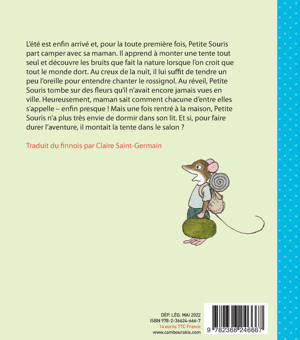 L'été est enfin arrivé et, pour la toute première fois, Petite Souris part camper avec sa maman. Il apprend à monter une tente tout seul et découvre les bruits que fait la nature lorsque l'on croit que tout le monde dort. Au creux de la nuit, il lui suffit de tendre un peu l'oreille pour entendre chanter le rossignol. Au réveil, Petite Souris tombe sur des fleurs qu'il n'avait encore jamais vues en ville. Heureusement, maman sait comment chacune d'entre elles s'appelle - enfin presque ! Mais une fois rentré à la maison, Petite Souris n'a plus très envie de dormir dans son lit. Et si, pour faire durer l'aventure, il montait la tente dans le salon ?