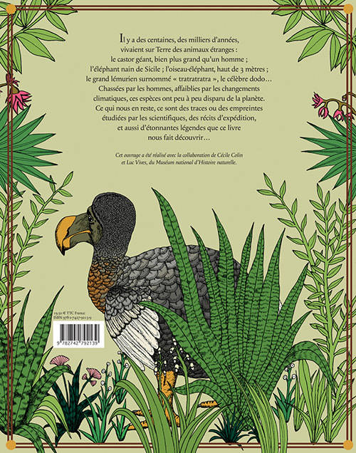Saviez-vous qu'il a existé des castors de deux mètres de long, que l'oiseau-éléphant n'est pas une créature imaginaire et que les dodos ne sortent pas des pages d'Alice au pays des merveilles ? Connaissiez-vous le megatherium, le glyptodon ou le tratratratra ? «Petites et grandes histoires des animaux disparus» nous emmène à travers les cinq continents à la découverte de toutes ces espèces qui ont disparu au cours des siècles. Victimes de l'arrivée des hommes, des changements climatiques, de la chasse et de la pêche, plusieurs d'entre elles se sont éteintes. À travers des récits légendaires et mythologiques, des anecdotes et des explications scientifiques, les auteurs nous racontent l'histoire passionnante de ces disparitions et nous présentent ces animaux, parfois étranges, que nous n'avons pas connus. Ce livre drôle et grave à la fois est une véritable mine d'informations pour tous ceux qui s'intéressent au monde animalier. Un voyage fascinant autour du monde qui mêle l'univers de la bande dessinée et celui des planches naturalistes, et à travers lequel mythes et science se rejoignent.