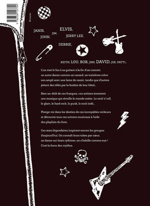 D'Elvis aux Beach boys, des Beatles à Nirvana, un panorama décoiffant de la culture rock, où l'on évoque aussi les codes vestimentaires liés à chaque univers musical, où l'on découvre les parcours de personnages excentriques, tourmentés et talentueux, leurs errances, leurs excès et leurs concerts mémorables. Pour chaque groupe ou artiste, une play-list des "indispensables" complète le portrait.