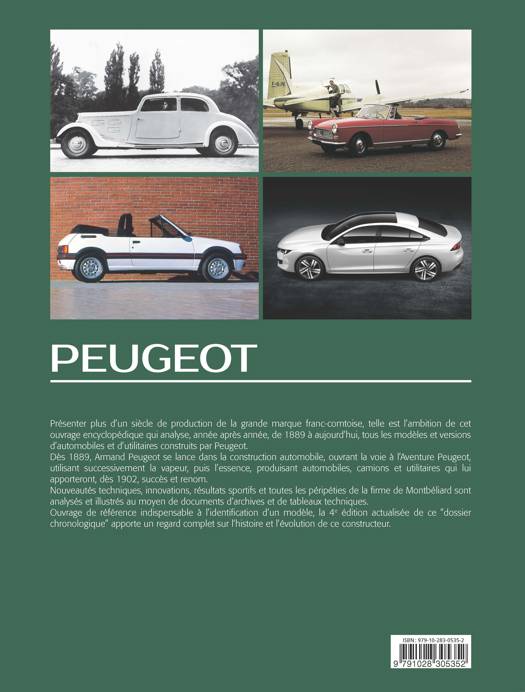 Présenter plus d’un siècle de production de la grande marque franc-comtoise, telle est l’ambition de cet ouvrage encyclopédique qui analyse, année après année, de 1889 à 2022, tous les modèles et versions d’automobiles et d’utilitaires construits par Peugeot. Dès 1889, Armand Peugeot se lance dans la construction automobile, ouvrant la voie à l’Aventure Peugeot, utilisant successivement la vapeur, puis l’essence, produisant automobiles, camions et utilitaires qui lui apporteront, dès 1902, succès et renom. Nouveautés techniques, innovations, résultats sportifs et toutes les péripéties de la firme de Montbéliard sont analysés et illustrés au moyen de documents inédits, et de tableaux techniques. Ouvrage de référence indispensable à l’identification d’un modèle, ce dossier chronologique apporte un regard nouveau sur l’histoire de l’automobile.