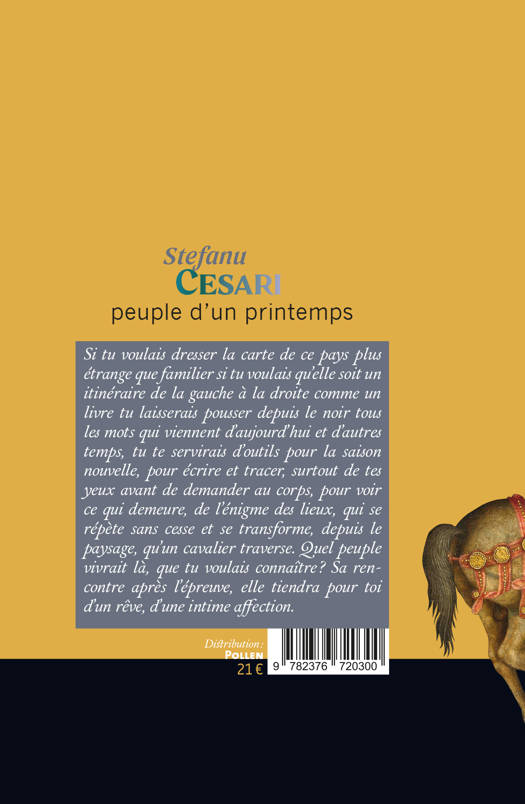 Si tu voulais dresser la carte de ce pays plus étrange que familier si tu voulais qu’elle soit un itinéraire de la gauche à la droite comme un livre tu laisserais pousser depuis le noir tous les mots qui viennent d’aujourd’hui et d’autres temps, tu te servirais d’outils pour la saison nouvelle, pour écrire et tracer, surtout de tes yeux avant de demander au corps, pour voir ce qui demeure, de l’énigme des lieux, qui se répète sans cesse et se transforme, depuis le paysage, qu’un cavalier traverse. Quel peuple vivrait là, que tu voulais connaîtreâ? Sa rencontre après l’épreuve, elle tiendra pour toi d’un rêve, d’une intime affection.