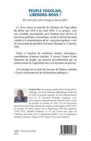 Ce livre couvre la période de l'histoire du Togo allant du début mai 2020 à fin août 2020. Grâce à l'analyse de nombreux articles, chroniques, contributions d'auteurs togolais, il ressort l'espoir d'une libération du peuple, qui passera inévitablement par un renforcement de l'opposition face à la dynastie au pouvoir.