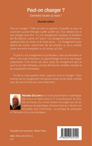 Peut-on changer ? Telle est bien la question à laquelle ne peut se soustraire aucune thérapie, quelle qu'elle soit. Tout dépend de ce que changer veut dire : il y a le changement utopique, le changement parcimonieux, le changement qu'on attend des autres. Et puis il y a le changement en profondeur, celui qui demande un effort, une vraie motivation, un apprentissage de soi et une longue préparation. En fait, la vraie question reste : jusqu'où veut-on changer ? Dans tous les cas, le changement n'est jamais simple, jamais facile, compte tenu de tous les liens qui nous retiennent