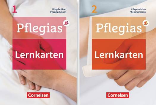 Die Pflegias Lernkarten umfassen die Themen des Lehrwerks Pflegias Band 1 (Grundlagen der Pflege) und Band 2 (Pflegerisches Handeln). Dazu zählen beispielsweise Fragen aus den Bereichen Diagnostik, Prävention. Pflegeplanung und zentrale Erkrankungen.