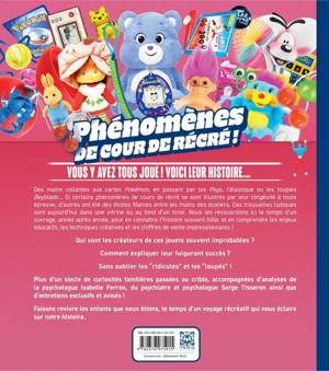 Des mains collantes aux cartes Pokémon, en passant par les Pogs, l’élastique ou les toupies Beyblade… Si certains phénomènes de cours de récré se sont illustrés par leur longévité à toute épreuve, d’autres ont été des étoiles filantes entre les mains des écoliers. Ces trouvailles ludiques sont aujourd’hui dans une vitrine ou au fond d’un tiroir. Nous les ressuscitons ici le temps d’un ouvrage, année après année, pour en connaître l’histoire souvent folle, et en comprendre les enjeux éducatifs, les techniques créatives et les chiffres de vente impressionnants !