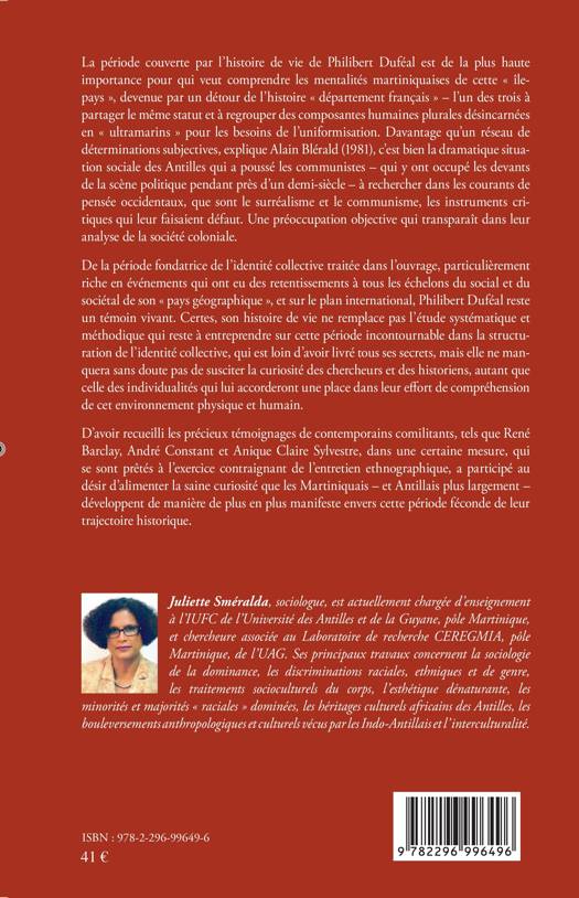 La période couverte par l'histoire de vie de Philibert Duféal est d'importance pour qui veut comprendre les mentalités martiniquaises. C'est bien la dramatique situation sociale des Antilles qui a poussé les communistes - qui ont occupé le devant de la scène politique pendant près d'un demi-siècle - à rechercher dans le surréalisme et le communisme les instruments critiques qui leur faisait défaut.