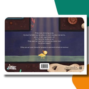 Philip is een dromerig eendje. Hij staart het liefst naar de wolken en merkt daardoor niet dat hij… plons! …in een diepe put valt. Oei! Hier is het donker en nat. Philip weet niet meer hoe hij terug naar boven moet. Kun jij hem helpen?