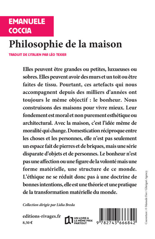 Nous construisons des maisons pour vivre "mieux" : l'essence de chaque maison réside dans cet adverbe. Le fondement de chaque maison est moral et non purement esthétique ou architectural. Avec elle, c'est l'idée même de moralité qui change. Car une maison n'est pas seulement un espace fait de pierres et de briques, mais une série disparate d'objets et de personnes.