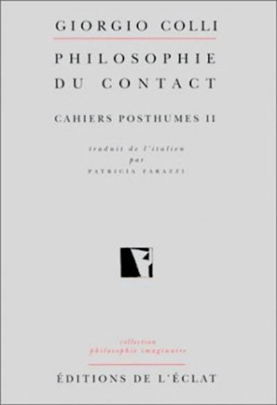 Le contact grandit à l'ombre du fragment d'Héraclite : «Contacts : les totalités et les non-totalités, le convergent et le divergent, le consonnant et le dissonnant.» Il est «l'indication d'un rien représentatif, d'un interstice métaphysique, qui est pourtant un certain rien, puisque ce qu'il n'est pas ... lui confère une détermination expressive». La prodigieuse plongée dans ce «rien qui est» laisse apparaître un monde, au seuil duquel Colli s'arrête. La terre promise d'une pensée du contact a encore les contours flous d'une œuvre posthume. Elle attend une nouvelle génération de pionniers du concept. Qui tarde.