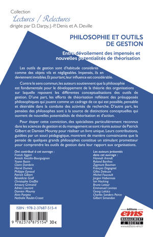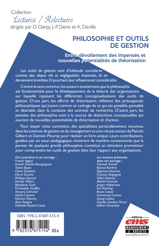 Pour étayer cette conviction, des spécialistes particulièrement reconnus dans les sciences de gestion et du management se sont réunis autour de Patrick Gilbert et Damien Mourey pour réaliser un livre unique. Leurs contributions, guidées par un souci pédagogique, montrent de manière convaincante que la pensée de quelques grands philosophes constitue un stimulant prometteur pour comprendre les outils de gestion dans leur rapport aux organisations.