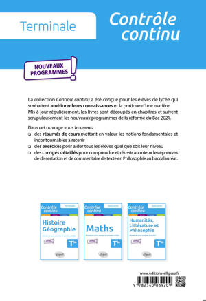 La collection Contrôle continu a été conçue pour les élèves de lycée qui souhaitent améliorer leurs connaissances et la pratique d'une matière.