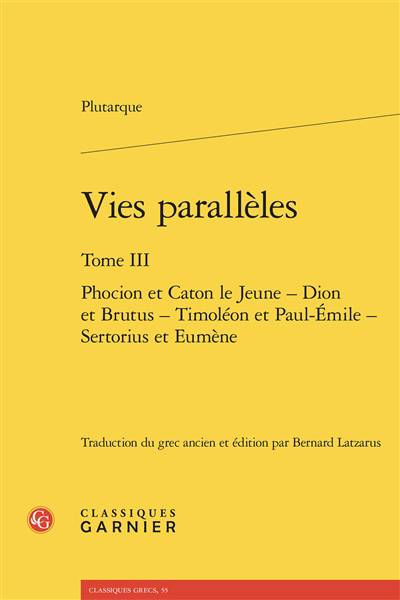 Phocion et Caton le Jeune, Dion et Brutus, Timoléon et Paul-Emile, Sertorius et Eumène