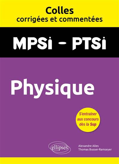 En complément de colles corrigées les plus représentatives du programme de Physique en MPSI et PTSI, cet ouvrage propose :