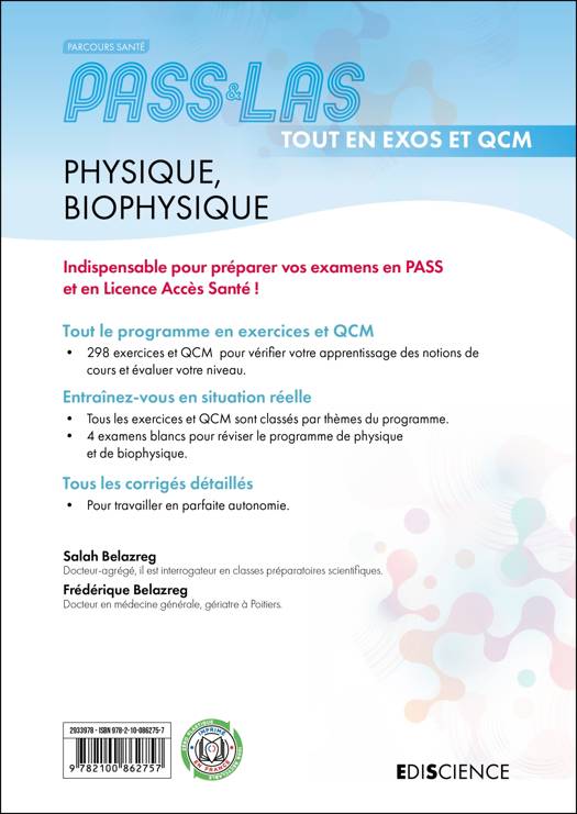 Cet ouvrage propose un entraînement complet pour bien préparer aux examens de Physique et Biophysique de PASS et de Licence Accès Santé (L.AS)