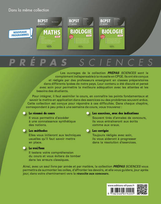 Avec un seul livre par année et par matière, la collection PRÉPAS SCIENCES vous guidera, jour après jour, dans votre cheminement vers la réussite aux concours.