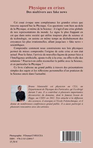 Cet ouvrage évoque sans complaisance les grandes crises que traverse aujourd'hui la Physique. Ces questions vont bien au-delà de la Physique, et même de la Science : il s'agit d'une crise globale de nos représentations du monde. Le signe le plus frappant en est que dans notre société qui utilise toujours plus de science et de technologie, on assiste en même temps au déchaînement des croyances les plus irrationnelles, allant jusqu'aux « fake news ». Comprendre comment nous construisons nos lois physiques permet de mieux comprendre l'origine de cette crise et son état actuel. Pour le futur, l'arrivée de nouvelles façons de penser liées à l'Intelligence artificielle, ajoute-t-elle à la crise, ou offre-t-elle des solutions ? Pourra-t-on enfin réconcilier le public avec la Science ?