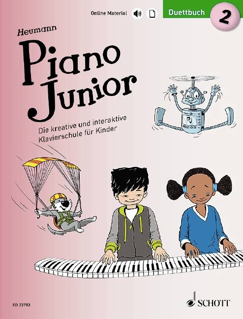 Duettbuch zu Piano Junior Band 2 • Der ideale Begleiter zur Piano Junior Klavierschule Band 2 • Enthält 15 leichte, nach Schwierigkeitsgrad geordnete Duette • Ermöglicht das Zusammenspiel ab den ersten Unterrichtsstunden Piano Junior, die neue Klavierschule für Kinder ab 6 Jahren, möchte Kindern nachhaltig Spaß am Klavier lernen vermitteln. In diesem neuartigen Konzept von Hans-Günter Heumann begleitet der liebenswerte Roboter „PJ“ gemeinsam mit seinem Hund „Mozart“ und ihren drei Freunden die kleinen Pianisten durch die ersten Unterrichtsjahre. Freude und Spaß an der Musik stehen im Vordergrund und der Fortschritt wird schnell hörbar. Begleitende Website mit vielfältigem Zusatzmaterial: Das Besondere bei diesem Lehrwerk ist die begleitende Website als Teil der Methode: Videos zeigen den Weg zur richtigen Technik, Audioaufnahmen helfen beim Einüben der Stücke, Übungsblätter und weiteres Material bieten zusätzliche Möglichkeiten zum Vertiefen der Inhalte. Umfassendes Konzept – zeitgemäß und flexibel: Zu jedem Band der Klavierschule stehen jeweils drei Begleithefte zur Verfügung mit vielfältigem Arbeitsmaterial und passenden Spielstücken für einen abwechslungsreichen Unterricht, der den unterschiedlichen Bedürfnissen der Schüler gerecht wird: • Klavierschule 2 (ED 22762) • Theoriebuch 2 (ED 22772) • Duettbuch 2 (ED 22782) • Konzertbuch 2 (ED 22792) Schwierigkeitsgrad: 1