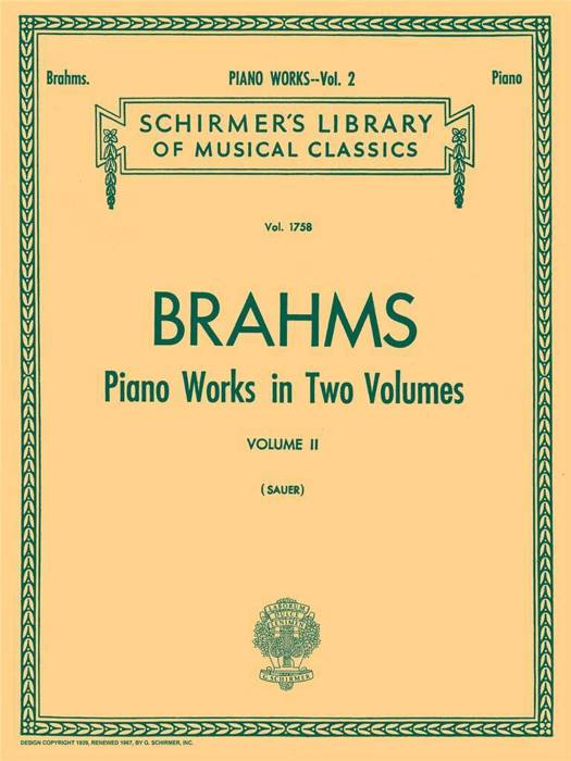 (Piano Collection). Contents: Eight Piano Pieces, Op. 76 * Two Rhapsodies, Op. 79 * Fantasies, Op. 116 * Three Intermezzi, Op. 117 * Six Piano Pieces, Op. 118 * Four Piano Pieces, Op. 119 * Study No. 1 (Etude after Chopin) * Study No. 2 (Rondo after Weber) * Study No. 3 (Presto after Bach, 1st arrangement) * Study No. 4 (Presto after Bach, 2nd arrangement) * Study No. 5 (Chaconne after J.S. Bach for the Left Hand).