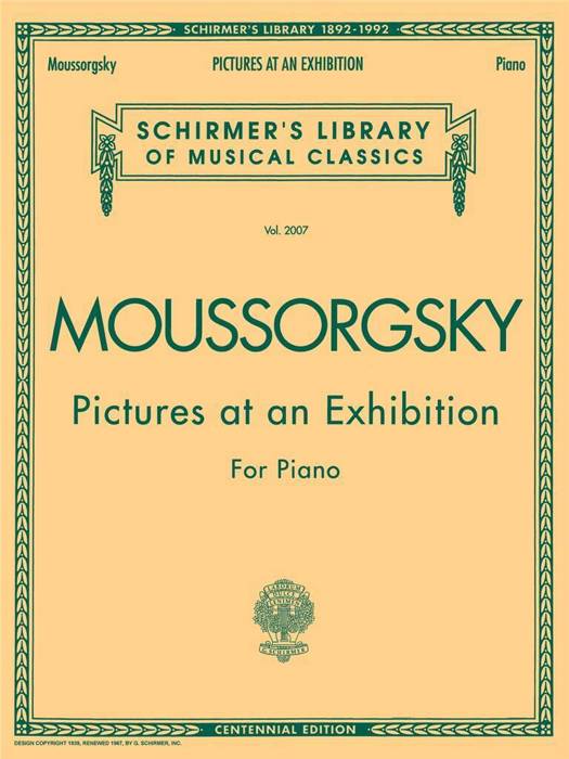 (Piano Large Works). This favorite piano cycle was composed by Mussorgsky in about 3 weeks, and was inspired by the drawings and watercolors of a his friend, the painter Victor Hartmann. Many changes have been made to the score over the years but this edition presents the work as Mussorgsky originally composed it. Contents: Ballet of the Chicks in their Shells * Catacombae * The Gnome * Great Gate of Kiev * The Hut on Fowl's Legs * The Market Place in Limoges * The Old Castle * The Ox Cart * Samuel Goldenberg & Schmuyle * Tuileries.