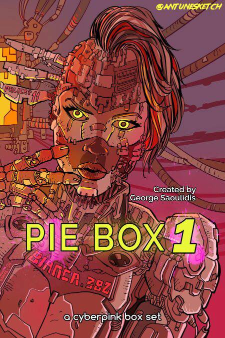 WARNING: "Pie Box 1" contains drug use, low inhibitions, cursing in multiple languages, British spelling, European political correctness, a ton of stuff given in the metric system, pink blood, red blood, dried blood, worship of made-up corporate gods, references to male and female body parts, drinking, abuse, murder for sport, murder for hire, attempted murder, lecherous fanboys directly from 4chan, polyamory, gangsterism, debt bondage (the non-sexy kind of bondage,) transhumanism, misquoted Doctor Who lines, LGBT characters, diversity, pickle consumption in large quantities, ouzo consumption in large quantities, poorly named things, bathroom scenes (Hitchcock would be proud,) and the story of a hero who's just trying to do the right thing while complaining about it.