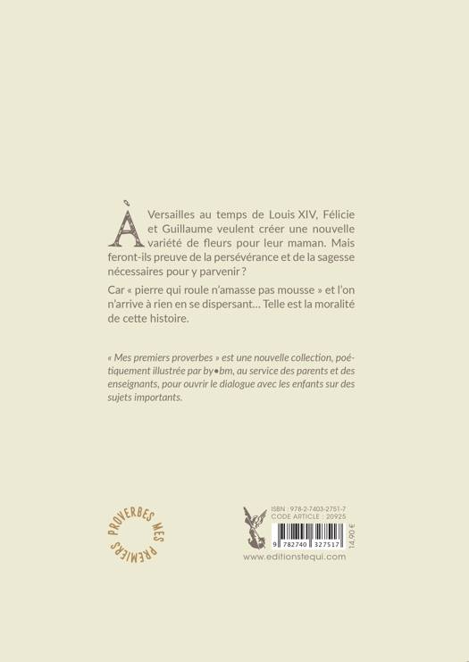 Félicie et son frère Guillaume vivent à Versailles au temps du Roi-Soleil et passent du temps dans les jardins. Ils se lancent le défi de créer une nouvelle variété de fleur pour leur maman. Félicie l'impétueuse décide d'aller chercher en Hollande un bulbe époustouflant tandis que Guillaume, sage et posé, va travailler avec l'horticulteur de Versailles. Feront-ils, l'un et l'autre, preuve d'assez de persévérance, en écoutant les conseils qu'on leur donne, pour réussir à relever ce défi ? Car "pierre qui roule n'amasse pas mousse" et l'on n'arrive à rien en se dispersant !
