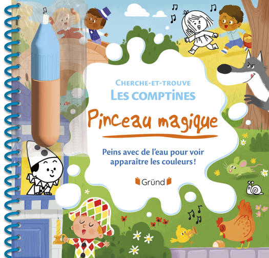 C'est magique ! Il te suffit de remplir ton pinceau avec de l'eau, puis de le passer sur les 6 décors magiques de ton carnet pour voir apparaître en couleurs les merveilleuses comptines. Attends un peu : les couleurs disparaissent à nouveau pour que tu puisses recommencer à l'infini !