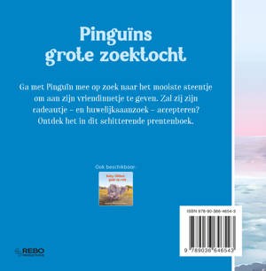 Ga met Pinguïn mee op zoek naar het mooiste steentje om aan zijn vriendinnetje te geven. Zal zij zijn cadeautje – en huwelijksaanzoek – accepteren? Ontdek het in dit schitterende prentenboek.