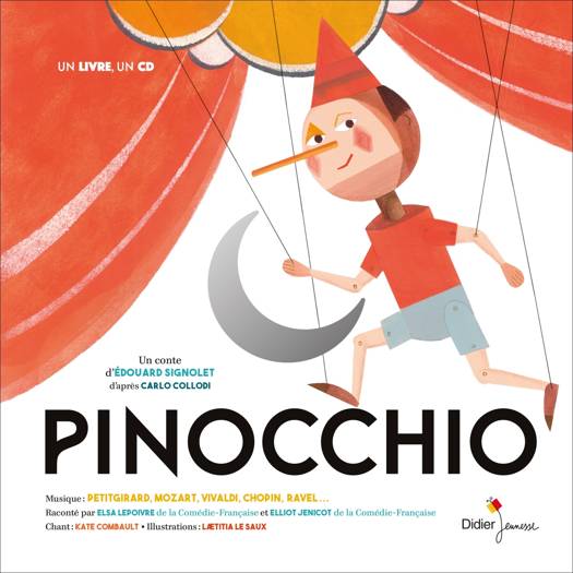 Elsa Lepoivre et Elliot Jenicot, deux comédiens de la Comédie-Française, et la soprano Kate Combault, dirigés par Edouard Signolet, jeune metteur en scène des plus talentueux. Le compositeur Laurent Petitgirard, célèbre pour ses musiques de films, réorchestre pour un trio violon, piano, violoncelle, des morceaux classiques (Mozart, Chopin, Vivaldi…), et des chansons contemporaines (Jacques Dutronc, Kurt Weil…), les agrémentant de ses propres morceaux et chansons. Réjouissant ! Laetitia Le Saux campe un Pinocchio malicieux qui aime montrer qu’il n’est pas fait de bois tendre. Avec sa patte géométrique et vintage, elle construit un univers singulier très marquant.