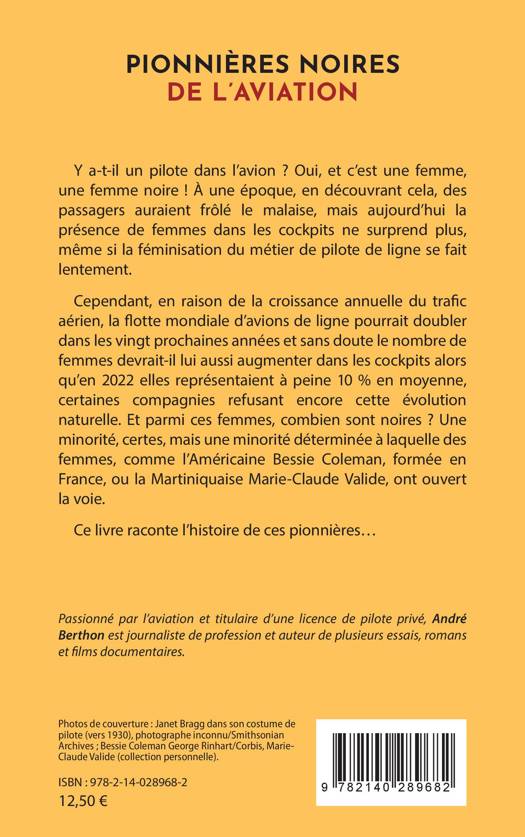 Y a-t-il un pilote dans l'avion ? Oui, et c'est une femme, une femme noire ! À une époque, en découvrant cela, des passagers auraient frôlé le malaise, mais aujourd'hui la présence de femmes dans les cockpits ne surprend plus, même si la féminisation du métier de pilote de ligne se fait lentement. Cependant, en raison de la croissance annuelle du trafic aérien, la flotte mondiale d'avions de ligne pourrait doubler dans les vingt prochaines années et sans doute le nombre de femmes devrait-il lui aussi augmenter dans les cockpits alors qu'en 2022 elles représentaient à peine 10 % en moyenne, certaines compagnies refusant encore cette évolution naturelle. Et parmi ces femmes, combien sont noires ? Une minorité, certes, mais une minorité déterminée à laquelle des femmes, comme l'Américaine Bessie Coleman, formée en France, ou la Martiniquaise Marie-Claude Valide, ont ouvert la voie.