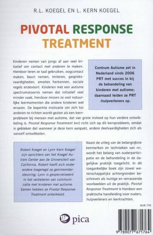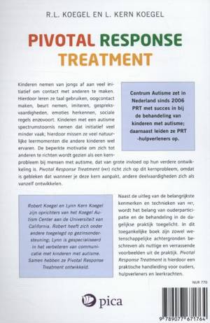 Kinderen nemen van jongs af aan veel initiatief om contact met anderen te maken. Hierdoor leren ze taal gebruiken, oogcontact maken, beurt nemen, imiteren, gespreksvaardigheden, emoties herkennen, sociale regels enzovoort. Kinderen met een autisme spectrumstoornis nemen dat initiatief veel minder vaak; hierdoor missen ze veel natuurlijke leermomenten die andere kinderen wel ervaren. De beperkte motivatie om zich tot anderen te richten wordt gezien als een kernprobleem bij mensen met autisme, dat van grote invloed op hun verdere ontwikkeling is. Pivotal Response Treatment (PRT) richt zich op dit kernprobleem, omdat is gebleken dat wanneer je deze kern aanpakt, andere deelvaardigheden zich als vanzelf ontwikkelen. Naast de uitleg van de belangrijkste kenmerken en technieken van PRT, wordt het belang van ouderparticipatie en de behandeling in de dagelijkse praktijk toegelicht. In dit toegankelijke boek zijn zowel wetenschappelijke achtergronden beschreven als nuttige en verrassende voorbeelden uit de praktijk. Pivotal Response Treatment is hierdoor een praktische handleiding voor ouders, hulpverleners en leerkrachten. Centrum Autisme zet in Nederland sinds 2006 PRT met succes in bij de behandeling van kinderen met autisme; daarnaast leiden ze PRT -hulpverleners op.