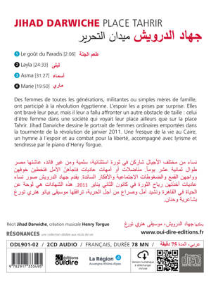Des femmes de toutes les générations, militantes ou simples mères de famille, ont participé à la révolution égyptienne. L'espoir les a prises par surprise. Elles ont bravé leur peur, mais il leur a fallu affronter un autre obstacle de taille : celui d'être femme dans une société qui voyait leur place ailleurs que sur la place Tahrir. Jihad Darwiche dessine le portrait de femmes ordinaires emportées dans la tourmente de la révolution de janvier 2011. Une fresque de la vie au Caire, un hymne à l'espoir et au combat pour la liberté, accompagné avec lyrisme et tendresse par le piano d'Henry Torgue.
