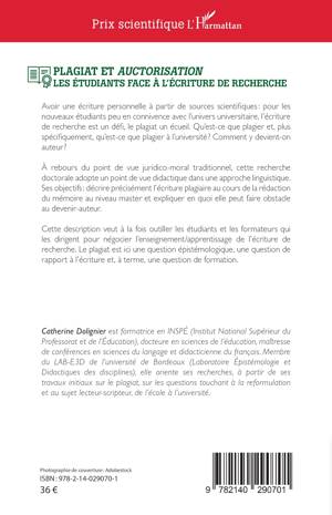 Avoir une écriture personnelle à partir de sources scientifiques : pour les nouveaux étudiants peu en connivence avec l’univers universitaire, l’écriture de recherche est un défi, le plagiat un écueil. Qu’est-ce que plagier et, plus spécifiquement, qu’est-ce que plagier à l’université ? Comment y devient-on auteur ? À rebours du point de vue juridico-moral traditionnel, cette recherche doctorale adopte un point de vue didactique dans une approche linguistique. Ses objectifs : décrire précisément l’écriture plagiaire au cours de la rédaction du mémoire au niveau master et expliquer en quoi elle peut faire obstacle au devenir-auteur. Cette description veut à la fois outiller les étudiants et les formateurs qui les dirigent pour négocier l’enseignement/apprentissage de l’écriture de recherche. Le plagiat est ici une question épistémologique, une question de rapport à l’écriture et, à terme, une question de formation.