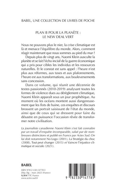 Nous ne pouvons plus le nier, la crise climatique est là et menace l'équilibre du monde. Alors, comment réagir maintenant que nous sommes au pied du mur ? Depuis plus de vingt ans, Naomi Klein ausculte la planète et se fait l'écho incisif de la guerre économique qui a pris pour cibles les individus et les ressources naturelles. Et le constat est sans appel : l'heure n'est plus aux réformes, aux taxes et aux plafonnements, l'heure est aux transformations, aux bouleversements sans concession. Dans ce volume, qui réunit une décennie de textes passionnés (2010-2019) analysant toutes les formes de violence dues au dérèglement climatique, Naomi Klein apparaît sous un jour prophétique. Au moment où les océans montent aussi dangereusement que les flots de haine, ces enquêtes et discours brossent un portrait saisissant de l'état du monde, ainsi que de ceux qui se dressent pour faire du désastre en puissance l'occasion rêvée de transformer notre civilisation.