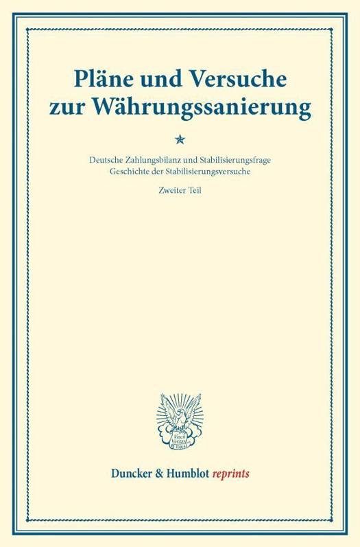 Geschichte Der Stabilisierungsversuche, Hrsg. Von Melchior Palyi, Zweiter Teil. Deutsche Zahlungsbilanz Und Stabilisierungsfrage, Im Auftrage Des Vereins Veranstaltet Von Karl Diehl / Felix Somary. (Schriften Des Vereins Fur Sozialpolitik 165/II)