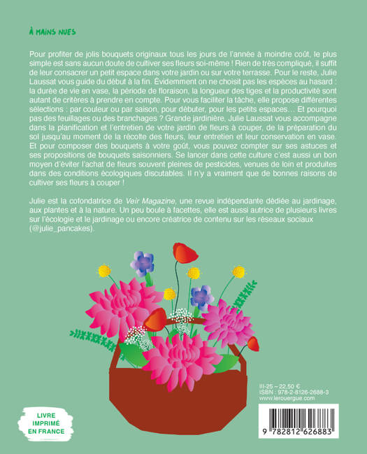 Cultiver des fleurs à couper c'est facile, satisfaisant et éthique ! Elles ont besoin de peu d'espace, peu de temps, peu d'eau. C'est aussi un bon moyen de découvrir la saisonnalité des fleurs, des variétés locales, anciennes et originales et de disposer de bouquets uniques toute l'année à moindre coût. Et lorsqu'on sait que 85 % des fleurs vendues en France proviennent de loin, alors il n'y plus de raison d'hésiter. De la graine à la fleur, Julie Laussat nous transmet son savoir-faire et sa passion : choix des espèces, soin du sol, petits espaces, semis ou plants, planning, entretien, cueillette et,composition... A vous de jouer !