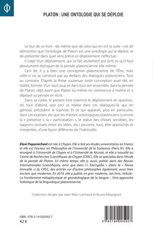 Le but de ce livre et de sa suite est de démontrer que l'ontologie de Platon est une ontologie qui se déploie, et de présenter dans quel sens précis ce déploiement s'effectue. Il s'agit d'un déploiement, qui se fait seulement par écrit, et qu'il faut absolument distinguer de la pensée platonicienne elle-même. Ceci dit, il y a bien une conception platonicienne de l'Être, mais celle-ci ne se construit pas dans les dialogues platoniciens. Tout au contraire. D'après la thèse soutenue, cette conception avait été, en réalité, formée, d'un seul coup et dans tout son ensemble, dans la pensée de Platon, déjà avant que Platon lui-même ne commence à mettre et à déployer sa pensée en écrit. Dans ce cadre, le présent livre examine le déploiement en question, tel, tout d'abord, que ceci se réalise dans les dialogues qui précèdent le Sophiste.